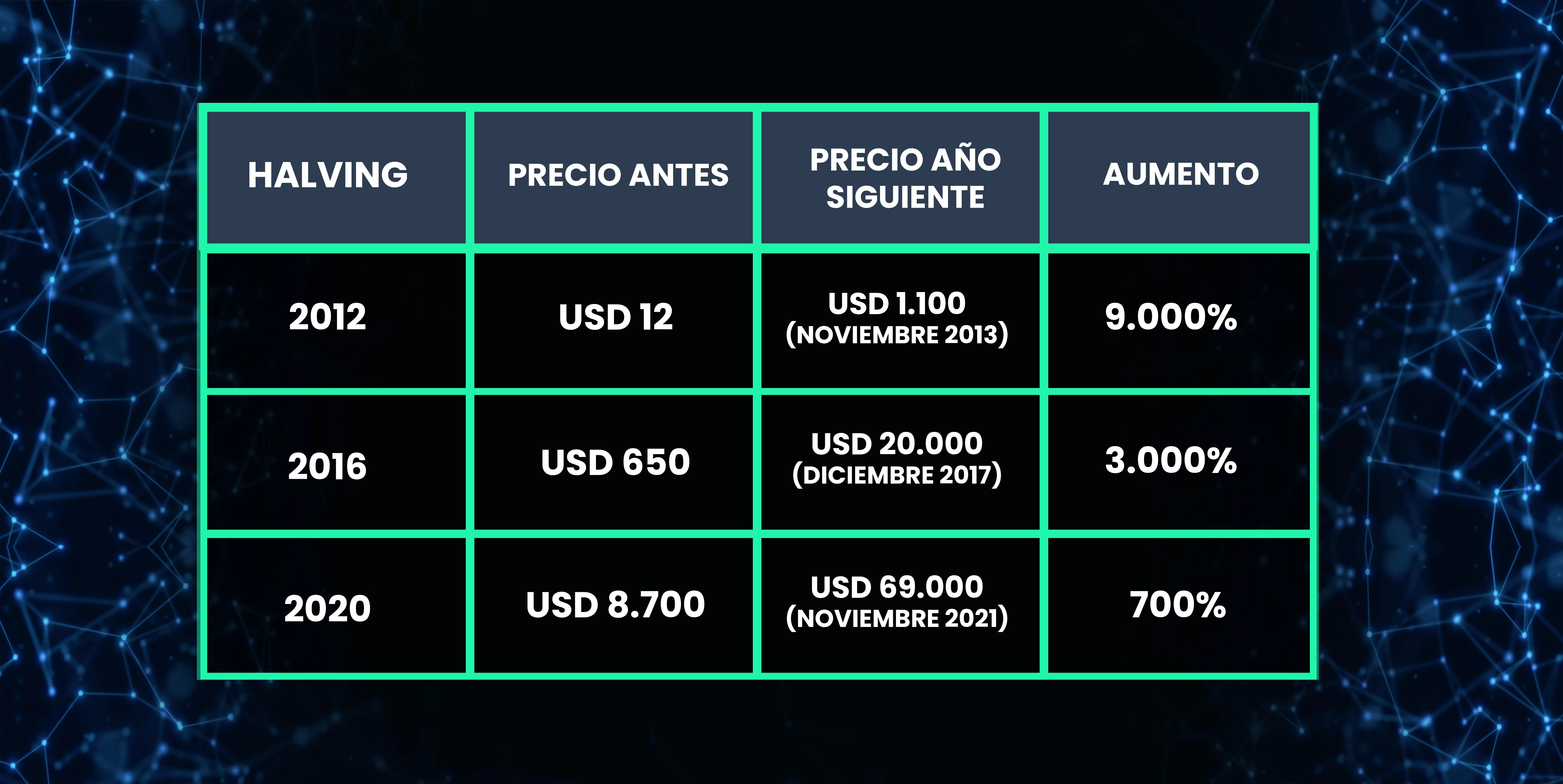 Mirá, desde su existencia, cada 4 años el bitcoin reduce su oferta a la mitad.